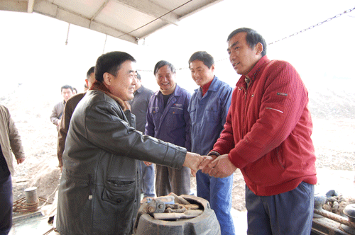 2009年12月24日上午,集團(tuán)公司胡運(yùn)成董事長(zhǎng)在公司總經(jīng)理李世龍、辦公室主任紀(jì)愛(ài)國(guó)的陪同下來(lái)到渦河河道疏浚工程項(xiàng)目現(xiàn)場(chǎng)檢查指導(dǎo)工作,并看望和慰問(wèn)了全體施工人員。