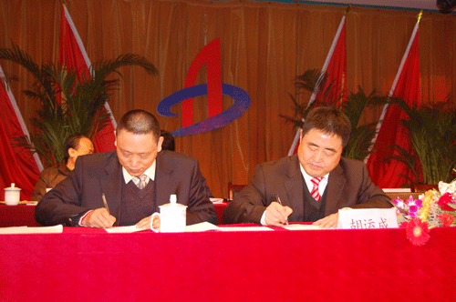 公司李世龍總經(jīng)理與集團董事長胡運成(右一)簽訂2010年經(jīng)營、安全目標考核責(zé)任書
