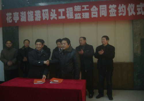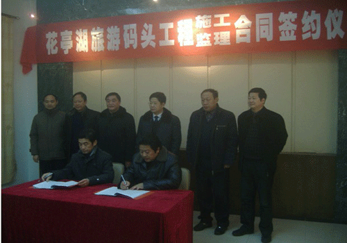 1月18日,我公司中標(biāo)的安徽省太湖縣花亭湖旅游碼頭工程簽約儀式在太湖縣龍山宮賓館舉行,簽約儀式由太湖縣花亭湖風(fēng)景區(qū)管理處主持,太湖縣委常委、縣政府常務(wù)副縣長(zhǎng)李琳以及相關(guān)負(fù)責(zé)人參加了簽約儀式。