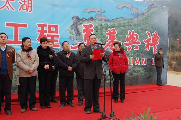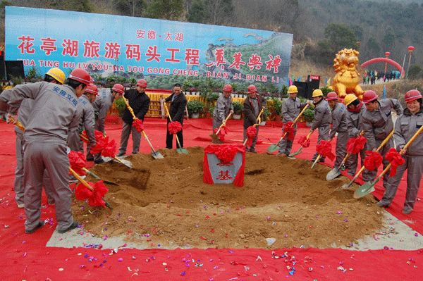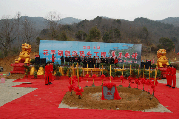2011年2月22日上午10:18分,安徽交航公司承建的太湖縣花亭湖旅游碼頭工程正式開(kāi)工。省交通運(yùn)輸廳基建處副處長(zhǎng)蒲仕光;安慶市政府副秘書(shū)長(zhǎng)金力力、安慶市旅游局局長(zhǎng)劉中漢;中共太湖縣委、太湖縣人大常委會(huì)主任章松;交航公司總經(jīng)理、黨委書(shū)記李世龍;黨委副書(shū)記、紀(jì)委書(shū)記曹興堂;副總經(jīng)理劉朝發(fā);項(xiàng)目經(jīng)理衛(wèi)邦齊等出席了開(kāi)工典禮。典禮由太湖縣縣委常委、縣人民政府常務(wù)副縣長(zhǎng)李琳主持。