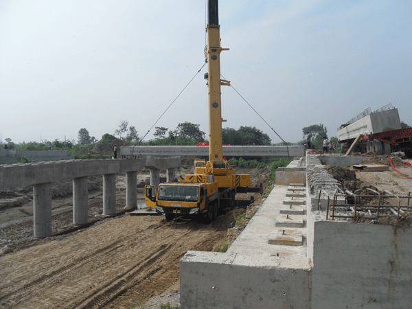2012年7月22日9時(shí)16分,隨著施工現(xiàn)場(chǎng)鞭炮、禮花齊鳴,亳州市南擴(kuò)二路漳河橋安裝正式開(kāi)始。亳州市重點(diǎn)局副局長(zhǎng)郭來(lái)運(yùn)、第四項(xiàng)目辦主任修功華、技術(shù)組組長(zhǎng)包厚禮、南擴(kuò)二路項(xiàng)目部全體成員參加梁板安裝儀式。