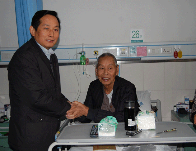 病房中牛主席緊握退休老職工的手,轉(zhuǎn)達(dá)了集團(tuán)公司對(duì)他的親切問(wèn)候,詳細(xì)詢問(wèn)了他的病情和現(xiàn)在的生活情況,叮囑陪同子女要關(guān)心和照顧好老人家,使其早日恢復(fù)健康。并希望老同志們?cè)谛碌囊荒昀锬軌蛞蝗缂韧年P(guān)心和支持公司的發(fā)展,為公司的建設(shè)獻(xiàn)計(jì)獻(xiàn)策。