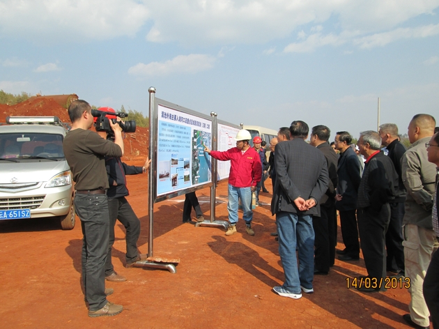 2013年3月14日,昆明市市委副書記、市委秘書長(zhǎng)及云南省人大代表部分領(lǐng)導(dǎo)蒞臨公司滇池治理三期工程小黑蕎存泥場(chǎng)指導(dǎo)工作。在現(xiàn)場(chǎng),指揮部副指揮長(zhǎng)王勇及項(xiàng)目部經(jīng)理邵佳就工程各方面情況向省市領(lǐng)導(dǎo)做了詳細(xì)的匯報(bào),市委副書記、市委秘書長(zhǎng)對(duì)我公司承接的滇池治理工程的質(zhì)量及安全情況予以充分肯定,并督促一定要加快工程進(jìn)度,確保工程按期完工。