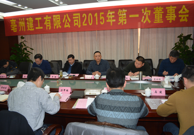 2015年1月31日,亳州建工有限公司在合肥成功召開二屆四次董事會,股東公司主要領導交航公司董事長李世龍、建安集團總經理韋翔應邀出席并發(fā)表重要講話,亳州建工董事會成員參加會議,監(jiān)事會成員和公司高管等列席會議。會議由公司董事長李濤主持。