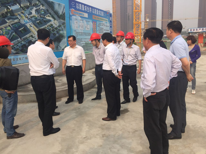 2016年5月6日上午,亳州市市長杜延安一行蒞臨公司建安文化廣場項目部檢查指導(dǎo)工作,副總經(jīng)理劉軍等陪同調(diào)研。