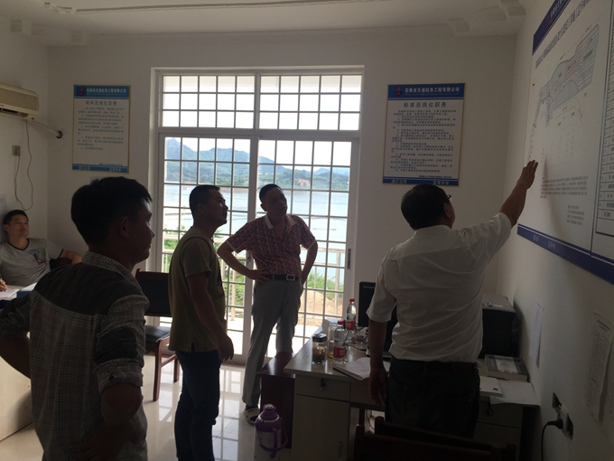 安糧黃山太平湖項(xiàng)目主體工程為水下樁基礎(chǔ)工程和上部混凝土梁板結(jié)構(gòu)工程,工程地處山區(qū)涉太平湖水上作業(yè),施工受天氣、地形、水位、水下施工環(huán)境等影響因素較大,施工難度較大,公司領(lǐng)導(dǎo)對(duì)該項(xiàng)目也格外關(guān)注與關(guān)心。一到項(xiàng)目部,李董事長(zhǎng)一行便直奔工地施工現(xiàn)場(chǎng),認(rèn)真聽取了項(xiàng)目負(fù)責(zé)人對(duì)當(dāng)前施工部署、施工進(jìn)度及存在的重點(diǎn)、難點(diǎn)等情況匯報(bào),他首先肯定了項(xiàng)目全體人員辛苦與努力,同時(shí)提出幾點(diǎn)希望:一是要根據(jù)現(xiàn)有施工方案進(jìn)一步優(yōu)化,合理有效的組織施工,加快施工進(jìn)度;二是要規(guī)范現(xiàn)場(chǎng)施工管理,確保施工管理的各項(xiàng)工作開展有序,使安全、質(zhì)量、成本、進(jìn)度處于受控狀態(tài);三是要加強(qiáng)學(xué)習(xí),利用業(yè)余時(shí)間學(xué)習(xí)專業(yè)知識(shí)、學(xué)習(xí)集團(tuán)項(xiàng)目管理辦法及相關(guān)規(guī)章制度文件,認(rèn)真做好“傳幫帶”工作,以有經(jīng)驗(yàn)帶動(dòng)無經(jīng)驗(yàn),年輕員工向老員工學(xué)習(xí),邊工作邊學(xué)習(xí),在實(shí)踐中快速成長(zhǎng)。隨后,公司副總經(jīng)理劉朝發(fā)對(duì)下一步的工作計(jì)劃作了具體的明確與要求,并叮囑項(xiàng)目部人員要做好夏季高溫防暑降溫工作,注重勞逸結(jié)合,要制定夏季高溫防暑降溫工作計(jì)劃和應(yīng)急方案,合理組織施工。