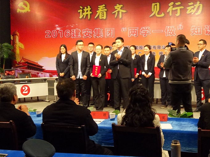 12月2日,建安集團(tuán)“講看齊,見(jiàn)行動(dòng)”兩學(xué)一做知識(shí)競(jìng)賽決賽在亳州電視臺(tái)舉行,建工黨支部代表隊(duì)力挫群雄,最終獲得二等獎(jiǎng)。