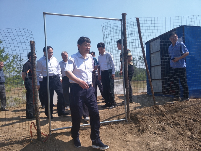 在施工現(xiàn)場,羅寧一行詳細了解了工程進展情況,一邊詢問施工存在問題,一邊查看標準化施工情況,并現(xiàn)場給予了指導。他對于項目部能夠結合當?shù)卣腿罕姷男枨?,利用廢棄河道、塌陷區(qū)低洼地作為拋泥區(qū),吹填造地近200多畝、造福百姓的行為表示贊賞,同時也對現(xiàn)場施工管理及圍堰安全防護措施給予高度評價。