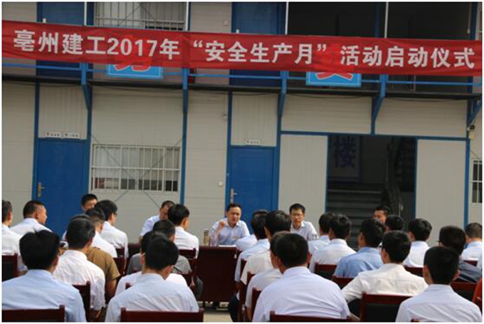 劉總為啟動(dòng)儀式作了致辭。劉總指出,6月是全國(guó)一年一度的“安全生產(chǎn)月”,“全面落實(shí)企業(yè)安全生產(chǎn)主體責(zé)任”是今年“安全生產(chǎn)月”活動(dòng)的主題。亳州建工將通過(guò)開(kāi)展“安全生產(chǎn)月”活動(dòng),集中一個(gè)月時(shí)間內(nèi),采取一系列措施,宣傳貫徹黨和國(guó)家關(guān)于安全生產(chǎn)工作的方針、政策及相關(guān)重大舉措,進(jìn)一步推動(dòng)強(qiáng)化安全意識(shí),提高安全素質(zhì),豐富安全文化,促進(jìn)亳州建工安全生產(chǎn)形勢(shì)持續(xù)穩(wěn)定好轉(zhuǎn)。
