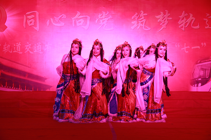 6月下旬,安徽交航合肥軌道交通4號線TJ03項(xiàng)目部接到演出邀請后,公司領(lǐng)導(dǎo)十分重視,公司工會積極組織職工排練節(jié)目。經(jīng)過5天的緊張排練,該節(jié)目順利通過合肥軌道公司的初審、二審,從38個節(jié)目中脫穎而出,成為15個參演節(jié)目中一朵靚麗的小花,在合肥5條軌道交通線四五十家施工企業(yè)中只有安徽交航、安徽路橋、中鐵四局等9家單位參演。歡快的舞曲、鮮明的節(jié)奏及歌頌的詞句展現(xiàn)出在解放西藏“一面進(jìn)軍、一面修路”的戰(zhàn)斗中,在實(shí)現(xiàn)民主改革的日子里,在邊疆自衛(wèi)反擊的戰(zhàn)場上,解放軍和藏族人民結(jié)下的魚水情意。演員們用飽滿的情緒和奔放的舞姿將演出推向高潮。