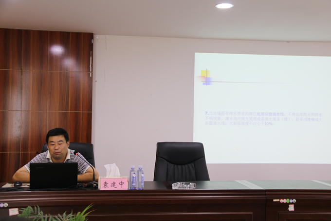 會上,袁建中站長首先通過現(xiàn)場實例,圖文并茂的剖析了房屋建筑容易產(chǎn)生的一些質(zhì)量通病,拓展了參與人員的知識面;之后根據(jù)實際情況,梳理了房屋滲漏與裂縫形成原因和解決思路,為大家提供了解決方法;最后針對建筑工程管理過程中出現(xiàn)的房屋滲漏、裂縫問題,進行針對性的案例分析。與會人員全程認(rèn)真聽講并記錄要點,大家紛紛表示受益匪淺。