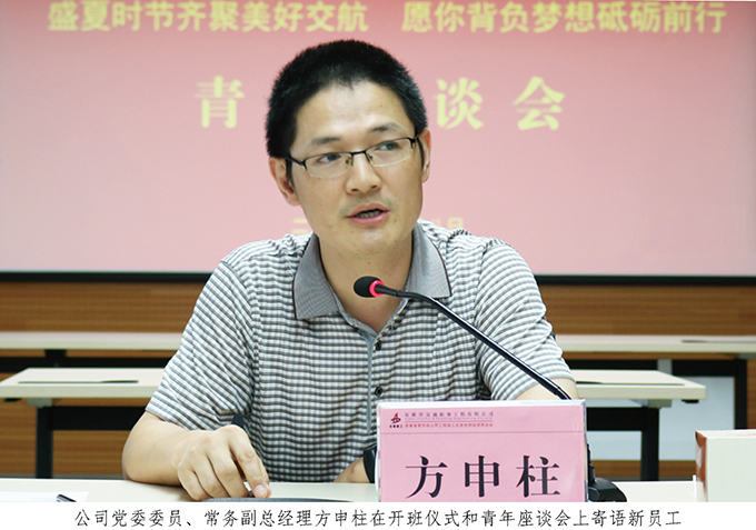 方申柱在開班儀式上作了動(dòng)員講話,他號(hào)召廣大新員工要充分了解交航,自覺轉(zhuǎn)變角色;盡快融入交航,牢記崗位職責(zé);真心熱愛交航,書寫無悔青春。方申柱結(jié)合自己畢業(yè)以來的工作、生活和學(xué)習(xí)經(jīng)歷,以一名老員工的名義語重心長(zhǎng)地送給新員工“三個(gè)法寶”:前路漫漫,要在懈怠時(shí)做到堅(jiān)持、堅(jiān)持、再堅(jiān)持;學(xué)無止境,要在業(yè)余時(shí)做到學(xué)習(xí)、學(xué)習(xí)、再學(xué)習(xí);成事不易,要在工作中做到主動(dòng)、主動(dòng)、更主動(dòng)。方申柱滿懷深情地說道:“天高任鳥飛,海闊憑魚躍。公司的未來靠大家一起去創(chuàng)造,自己的未來更要靠自己去打拼。青年朋友要立足崗位,自覺踐行‘誠信為本、敬業(yè)至上’的企業(yè)核心價(jià)值觀,弘揚(yáng)‘團(tuán)結(jié)、拼搏、求實(shí)、創(chuàng)新’的企業(yè)精神,發(fā)揚(yáng)‘特別能吃苦,特別能戰(zhàn)斗’的企業(yè)作風(fēng),堅(jiān)持腳踏實(shí)地、展示聰明才智,成就交航的偉大事業(yè)、實(shí)現(xiàn)自己的人生理想!”