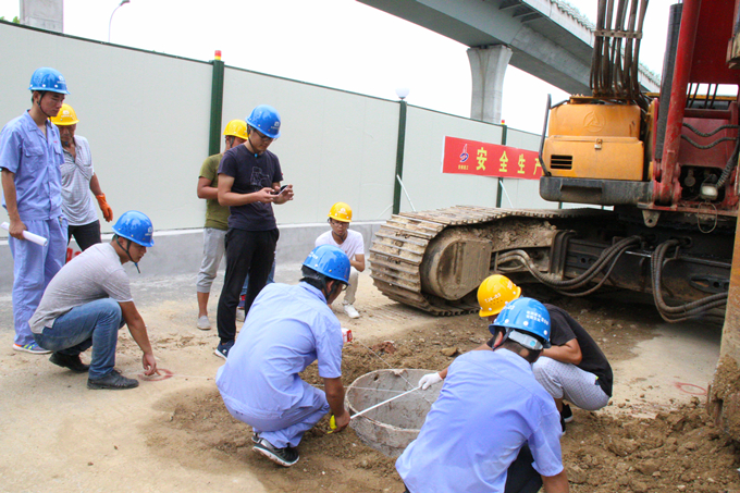當(dāng)日上午,業(yè)主代表及第三方單位一行人到場檢查指導(dǎo)安徽交航公司承建的潛口路站首根樁基成孔工作。項目測量組對首根樁位進(jìn)行精確放樣,并對鉆機(jī)鉆桿進(jìn)行垂直度矯正。9點28分,鉆機(jī)啟動,在項目各部門有序配合下。歷時1小時20分鐘順利成孔。