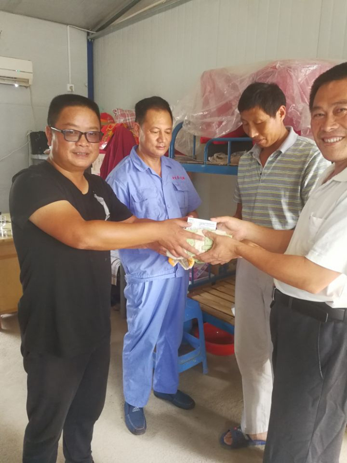 為此,按公司工會(huì)要求,疏浚分公司中湖項(xiàng)目部領(lǐng)導(dǎo)班子于2017年7月19日中午時(shí)分,頂著烈日前往“皖吸十二號(hào)”和“洞庭五號(hào)”船為正在船上作業(yè)的船員送去慰問(wèn)品。炎炎夏日送清涼,絲絲關(guān)愛(ài)入心田;一份清涼,一份關(guān)懷,一份愛(ài)心。夏季送清涼活動(dòng)不僅送去了公司對(duì)一線職工的關(guān)懷,更是極大的激勵(lì)了船員工作的士氣,提高了工作的熱情與效率,為項(xiàng)目的順利開(kāi)展提供了最基本的保障。