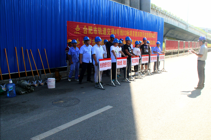 合肥市軌道交通4號線TJ03標(biāo)工程項目部開展“防暑防洪防汛”應(yīng)急預(yù)案演練