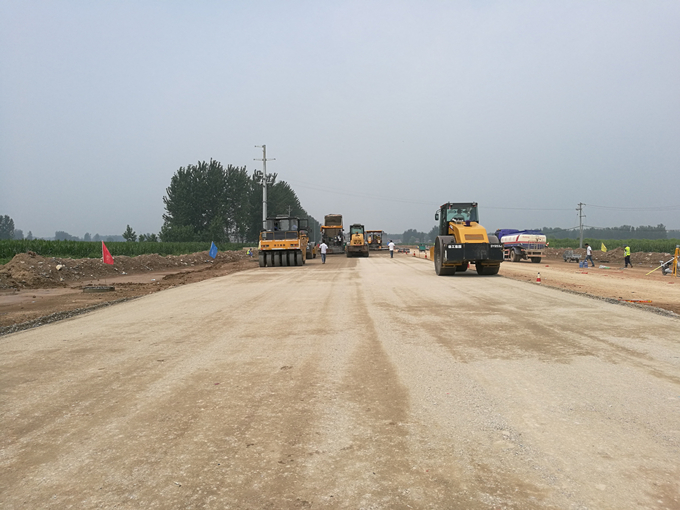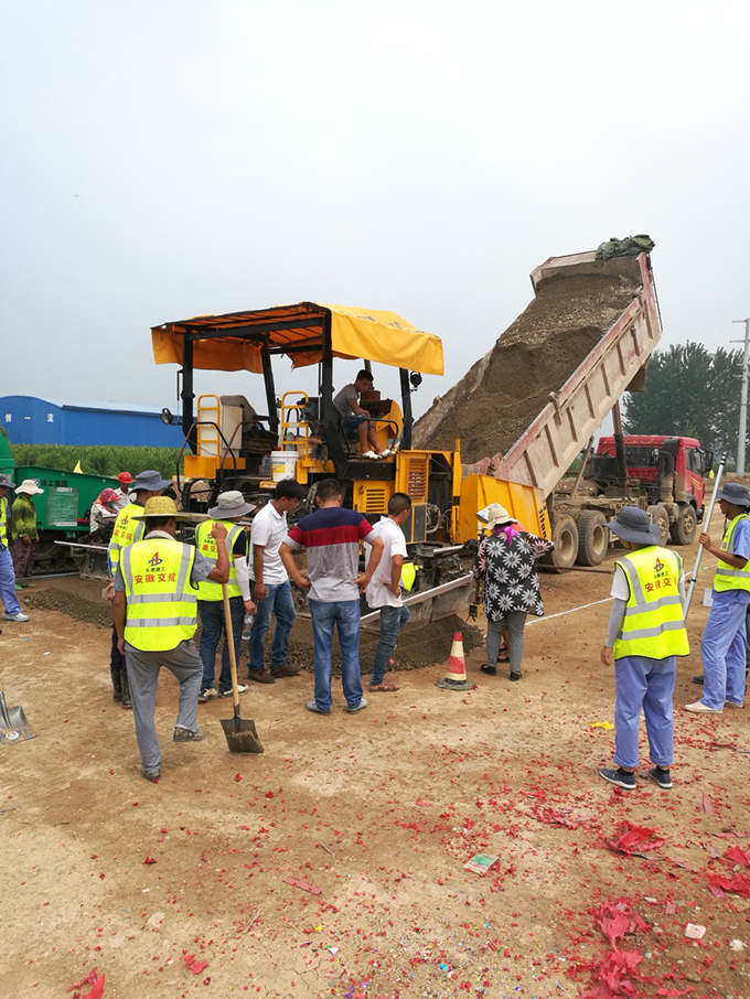 8月5日,蕭楊路水穩(wěn)試驗(yàn)段開始攤鋪,此次水穩(wěn)試驗(yàn)段長度200米。上午10時,隨著第一車水穩(wěn)混合料緩緩倒入攤鋪機(jī)料斗時,標(biāo)志著蕭楊路成功完成工序的轉(zhuǎn)換,也標(biāo)志著我項(xiàng)目進(jìn)入路面基層施工的新階段。