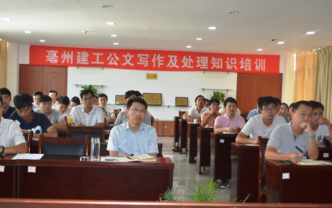 為進(jìn)一步提升全體職工公文寫(xiě)作水平和能力,提高員工的業(yè)務(wù)素養(yǎng),強(qiáng)化公文寫(xiě)作規(guī)范意識(shí),亳州建工于9月15日開(kāi)展了公文寫(xiě)作及處理知識(shí)培訓(xùn)。特別邀請(qǐng)亳州市政府辦公室文秘科彭鵬進(jìn)行授課,機(jī)關(guān)各部門(mén)全體員工、各項(xiàng)目部負(fù)責(zé)人及項(xiàng)目負(fù)責(zé)文字資料等相關(guān)人員參加了培訓(xùn)。