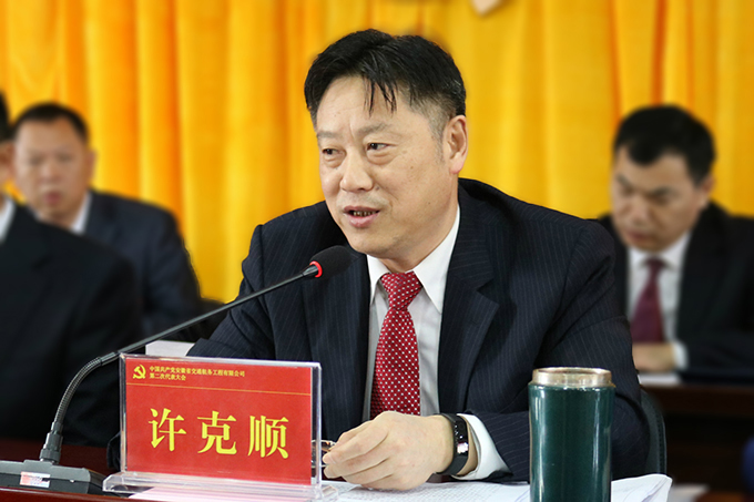 許克順代表集團(tuán)公司黨委,向大會的順利召開表示熱烈祝賀,并在講話中強(qiáng)調(diào),要深入學(xué)習(xí)貫徹黨的十九大精神,以十九大精神指導(dǎo)大會召開、部署未來工作;要統(tǒng)一思想,振奮精神,切實(shí)增強(qiáng)發(fā)展緊迫感;要落實(shí)全面從嚴(yán)治黨要求,夯實(shí)“兩個(gè)責(zé)任”,不斷提高黨的建設(shè)科學(xué)化水平;要嚴(yán)明黨的紀(jì)律,嚴(yán)守政治規(guī)矩,確保大會圓滿成功。