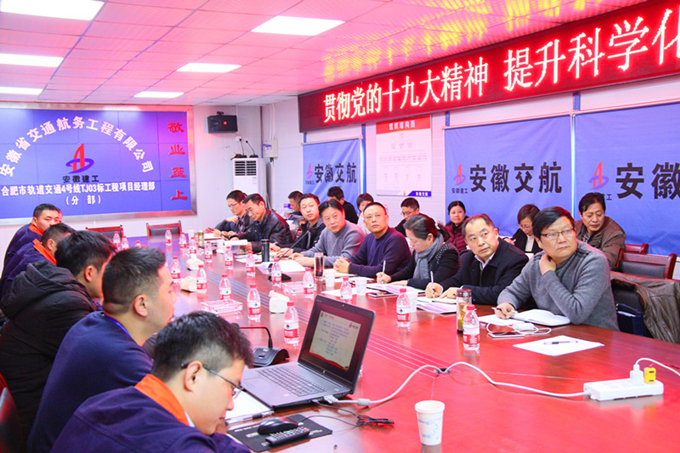 2017年12月19日下午,安徽建工集團(tuán)黨委委員、副總經(jīng)理許克順,經(jīng)營(yíng)部副主任楊利生等一行,蒞臨交航軌道交通4號(hào)線項(xiàng)目部宣貫“十九大”會(huì)議精神。安徽交航黨委書記、董事長(zhǎng)、總經(jīng)理李世龍等班子成員,機(jī)關(guān)各部門負(fù)責(zé)人,地鐵項(xiàng)目部全體成員參加宣貫會(huì)。