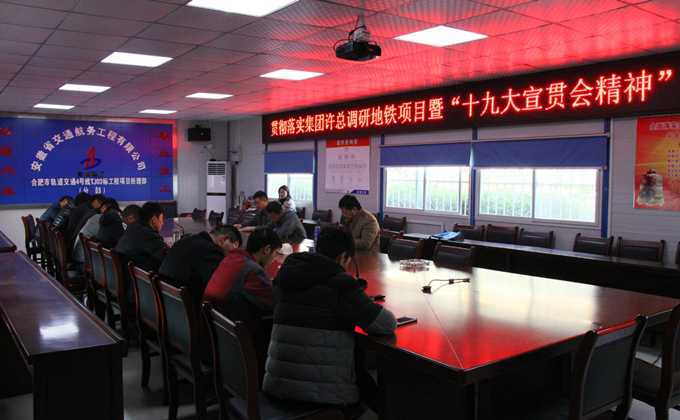 2017年12月24日下午,合肥市軌道交通4號(hào)線03標(biāo)潛口路站項(xiàng)目部召開貫徹落實(shí)集團(tuán)公司許總調(diào)研地鐵項(xiàng)目暨“十九大精神”宣貫會(huì),公司副總經(jīng)理侯力,紀(jì)委書記、工會(huì)主席李楊,總工辦負(fù)責(zé)人衛(wèi)邦齊及項(xiàng)目部各部門負(fù)責(zé)人參加,會(huì)議由侯總主持。