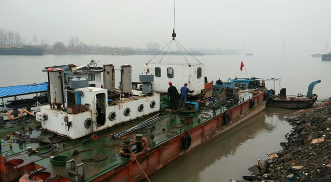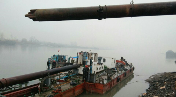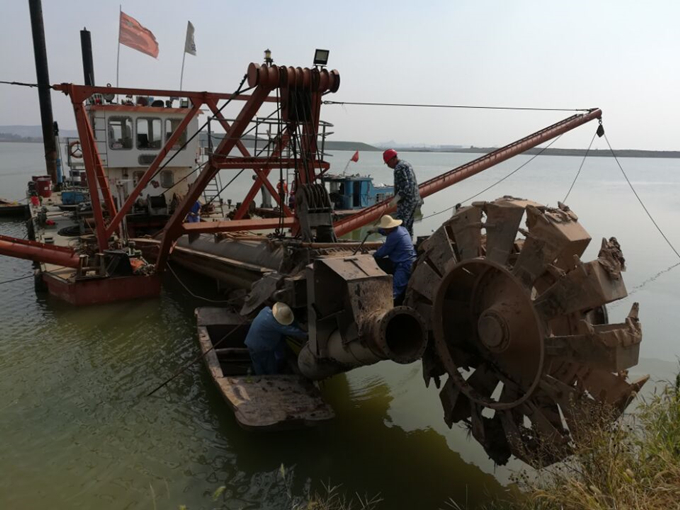 因工作需要,皖吸十二號船隊將緊急調(diào)往駟馬山工地施工。然而,當(dāng)時的皖吸十二號船隊正停泊在淮北中湖工地,停泊水域的四周不具備通航條件,當(dāng)初進場的時候耗費了大量的人力、財力和時間。