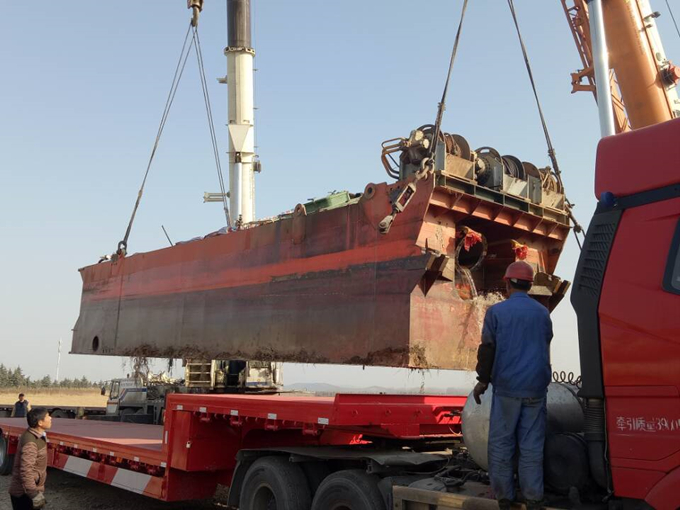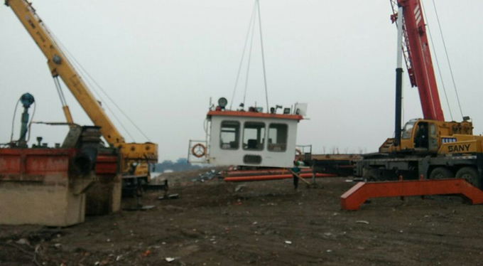 面對皖吸十二號挖泥船這樣幾百噸重的龐然大物,還有拋錨艇等輔助設(shè)備均需短時間從陸上運輸?shù)饺俣喙镆酝獾男鹿さ?/FONT>等新問題,疏浚分公司人員開動腦筋、創(chuàng)新思維,積極探索新方法、新思路。疏浚分公司與專業(yè)團隊達成戰(zhàn)略合作框架協(xié)議,大膽利用新技術(shù)、新設(shè)備,以全面提高安全系數(shù),合理高效地利用時間、空間。疏浚分公司將挖泥船及輔助船舶科學(xué)地進行水上解體,化整為零后裝車運輸,到達工地后在進行水下組裝,在此過程中還進行了適當(dāng)?shù)木S修保養(yǎng)。自本月23日到27日共歷時五天時間,皖吸十二號船隊順利抵達當(dāng)涂天宇船廠并完好無損地保持了原有的各項性能。