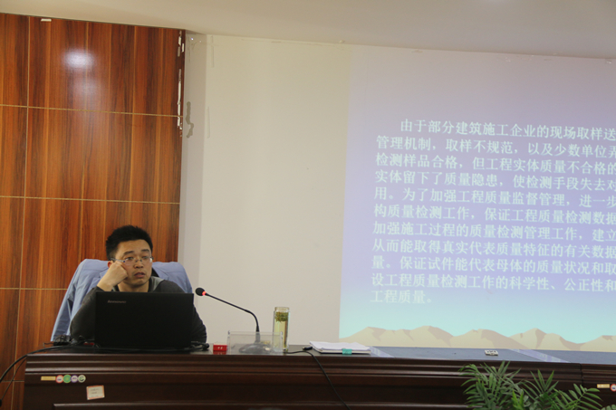為進一步加強建筑工程質(zhì)量的監(jiān)督管理,規(guī)范建筑材料和結(jié)構(gòu)質(zhì)量檢測工作,3月30日下午,亳州建工特邀亳州市質(zhì)檢站李淮南對公司工程專業(yè)技術(shù)人員進行了見證取樣檢測、質(zhì)量監(jiān)督與質(zhì)量管理標(biāo)準(zhǔn)化專題培訓(xùn)。