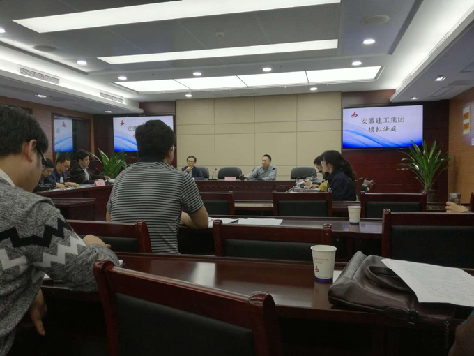 2018年4月12日下午,安徽建工集團(tuán)首屆模擬法庭大賽在集團(tuán)辦公大樓28樓會議室召開。本次大賽由集團(tuán)總法律顧問申玉恩擔(dān)任總評委、集團(tuán)法律事務(wù)部副主任王勇主持。我公司法務(wù)人員董浩洋作為選手參加了比賽,沙昱凡進(jìn)行了旁聽。