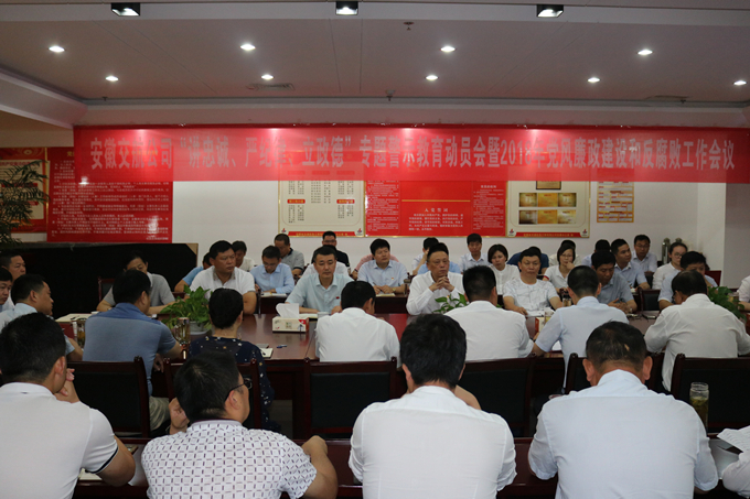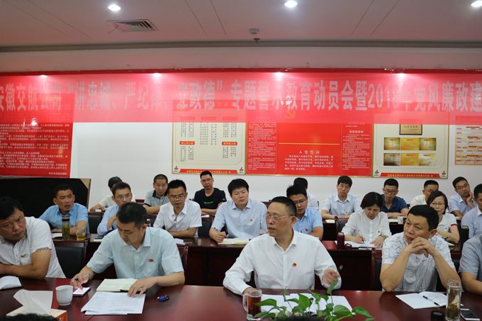 6月13日上午,安徽交航公司“講忠誠(chéng)、嚴(yán)紀(jì)律、立政德”專題警示教育動(dòng)員暨2018年黨風(fēng)廉政建設(shè)和反腐敗工作會(huì)議在公司九樓會(huì)議室召開。公司黨委書記、董事長(zhǎng)、總經(jīng)理李世龍全文傳達(dá)了集團(tuán)公司黨委書記、董事長(zhǎng)趙時(shí)運(yùn)在集團(tuán)公司“講忠誠(chéng)、嚴(yán)紀(jì)律、立政德”專題警示教育動(dòng)員暨2018年黨風(fēng)廉政建設(shè)和反腐敗工作會(huì)議上的講話,并就交航公司專題警示教育作動(dòng)員講話,就公司黨風(fēng)廉政建設(shè)和反腐敗工作提出具體要求;公司黨委副書記、副總經(jīng)理方申柱傳達(dá)了有關(guān)案件警示材料;公司黨委委員、紀(jì)委書記、工會(huì)主席李楊全文傳達(dá)了集團(tuán)公司黨委委員、紀(jì)委書記宋志華在集團(tuán)專題警示教育動(dòng)員暨2018年黨風(fēng)廉政建設(shè)和反腐敗工作會(huì)上的講話,并作相關(guān)工作安排。