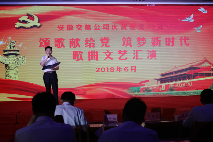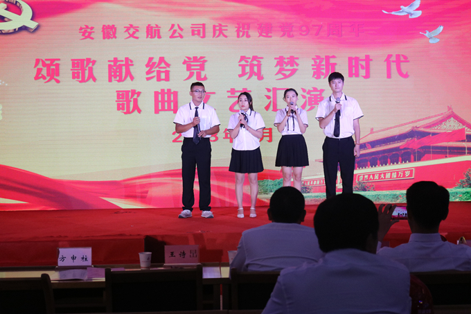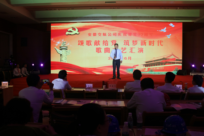 為慶祝中國共產(chǎn)黨成立97周年,展現(xiàn)安徽交航人開拓進取、奮發(fā)有為的精神面貌,6月23日晚,安徽交航公司在3樓禮堂隆重舉辦“頌歌獻給黨 筑夢新時代”文藝匯演。