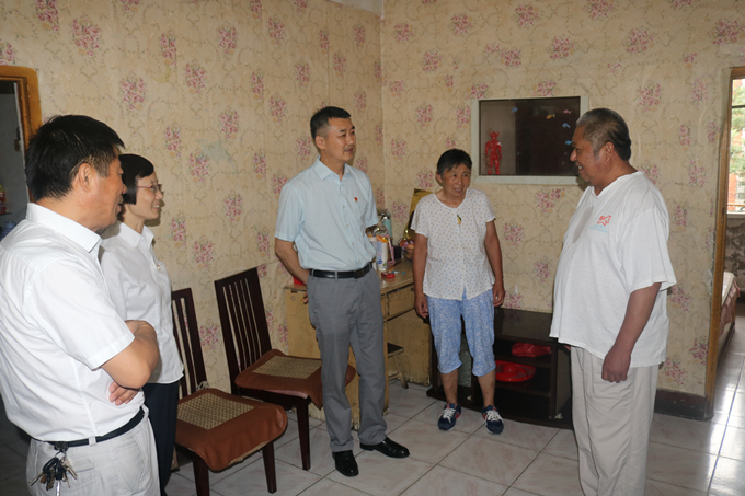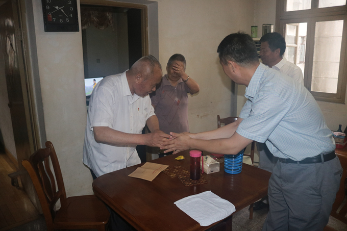 “現(xiàn)在身體怎么樣?生活過得好嗎?”李楊首先來到困難老黨員呂承斌家中,親切地和他拉起家常,詳細(xì)了解他的生活情況和身體健康狀況。呂承斌雖年事已高,但精神狀態(tài)很好,十分健談,他向李楊表達(dá)了全家人對(duì)黨組織的感謝。看到老人的狀態(tài)不錯(cuò),李楊十分高興,并感謝他為黨和公司的事業(yè)傾注的心血、汗水。