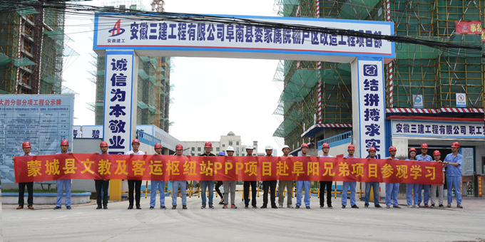 2018年7月10日,在公司第二工程分公司副經(jīng)理王菲及蒙城PPP項(xiàng)目經(jīng)理李道生的帶領(lǐng)下,蒙城PPP項(xiàng)目組織開展“走出去、學(xué)回來”系列活動(dòng),赴阜陽兄弟項(xiàng)目參觀學(xué)習(xí)。