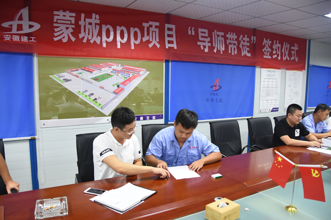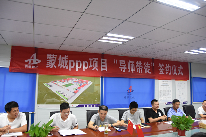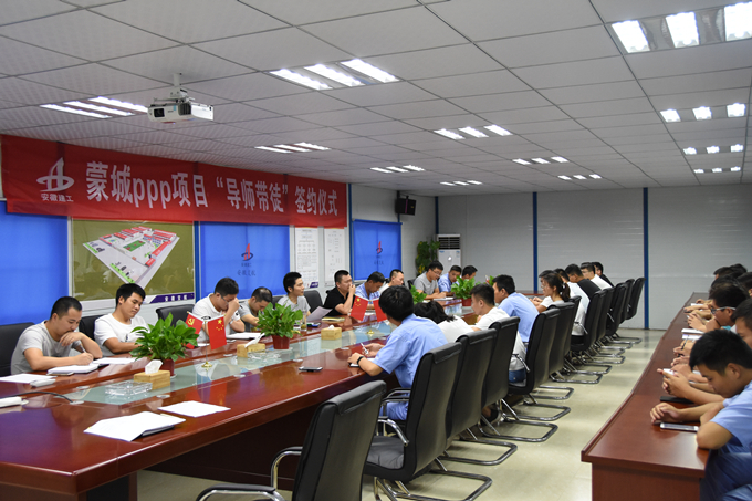 8月15日,蒙城項目組織開展“導(dǎo)師帶徒”簽約儀式,公司第二工程分公司副經(jīng)理王菲、蒙城PPP項目執(zhí)行經(jīng)理李道生及項目部40余人參加此次活動。