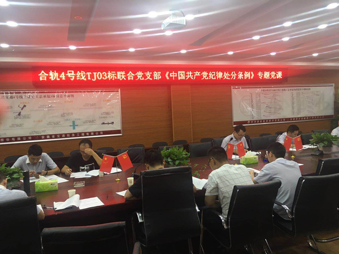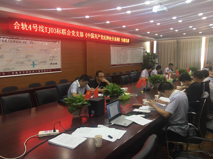 為筑牢思想防線,強化紀(jì)律約束,自覺做到守紀(jì)律、講規(guī)矩,知敬畏、存戒懼。9月3日下午,合肥市軌道交通4號線TJ03標(biāo)項目黨支部組織全體黨員集中學(xué)習(xí)新修訂的《中國共產(chǎn)黨紀(jì)律處分條例》。黨支部書記翁厚洋主持并進(jìn)行導(dǎo)讀,黨支部全體人員參加學(xué)習(xí)。