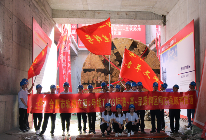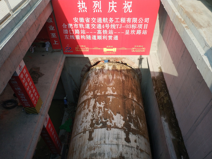 2019年6月3日上午,隨著碩大的盾構(gòu)機刀盤從呈坎路站左線盾構(gòu)井破土而出,標(biāo)志著合肥軌道交通4號線3標(biāo)高鐵站~呈坎路站左線區(qū)間順利貫通,這是4號線貫通的第 19 個單線區(qū)間隧道,第 8 條雙線區(qū)間。潛高、高呈兩個區(qū)間作為合肥軌道交通4號線工程穿越重大風(fēng)險較多的典型區(qū)間,安全質(zhì)量符合規(guī)范要求,各項監(jiān)測數(shù)據(jù)穩(wěn)定,標(biāo)志著合肥軌道交通4號線工程建設(shè)取得重大階段性成果。