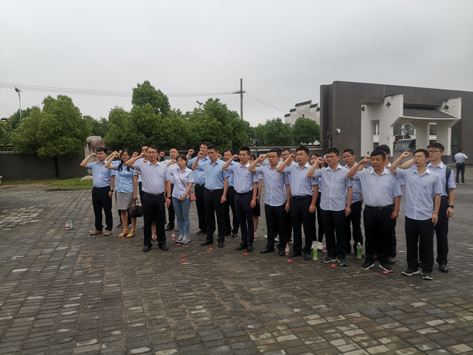 在瑤崗渡江戰(zhàn)役總前委舊址紀念館,雙方黨員向著黨旗,舉起右手莊嚴宣誓。鏗鏘豪邁的誓言使每一位黨員職工仿佛回到了入黨的那一刻,又一次接受心靈的洗禮,進一步堅定了理想信念。