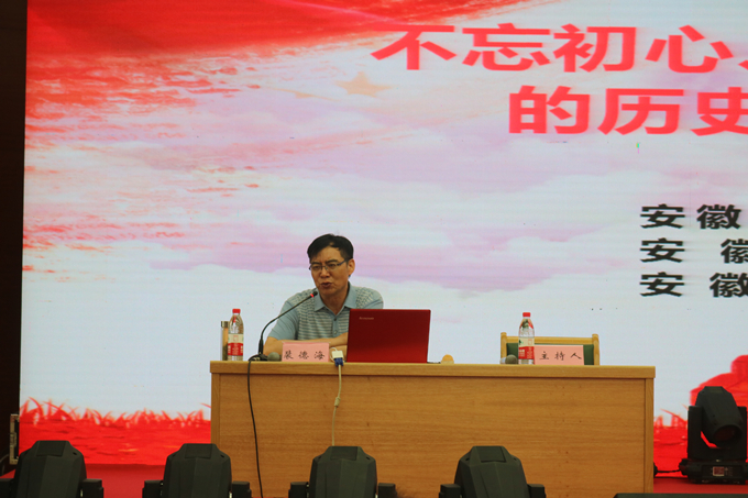 會議邀請了安徽大學(xué)哲學(xué)系教授裴德海為大家作《“不忘初心、牢記使命”主題教育的歷史內(nèi)涵及時(shí)代價(jià)值》專題報(bào)告。裴教授從明確初心、堅(jiān)定初心、固化初心、守望初心、證明初心五個(gè)方面詳細(xì)闡述了中國共產(chǎn)黨的誕生和發(fā)展歷程,以及中國社會和人民最終選擇中國共產(chǎn)黨的根本原因。同時(shí)深入解讀了新時(shí)期、新形勢下中國共產(chǎn)黨開展“不忘初心、牢記使命”主題教育的歷史和現(xiàn)實(shí)意義,讓大家明白了“四大考驗(yàn)”和“四種危險(xiǎn)”要求全體共產(chǎn)黨人必須“不忘初心、牢記使命”。裴教授用大量史實(shí)和案例為大家上了一堂精彩生動(dòng)的培訓(xùn)課程,讓大家進(jìn)一步了解了黨的艱辛發(fā)展歷程和建黨以來取得的巨大成果,為深刻理解“不忘初心、牢記使命”主題教育的重大意義提供了獨(dú)特的思路和見解。