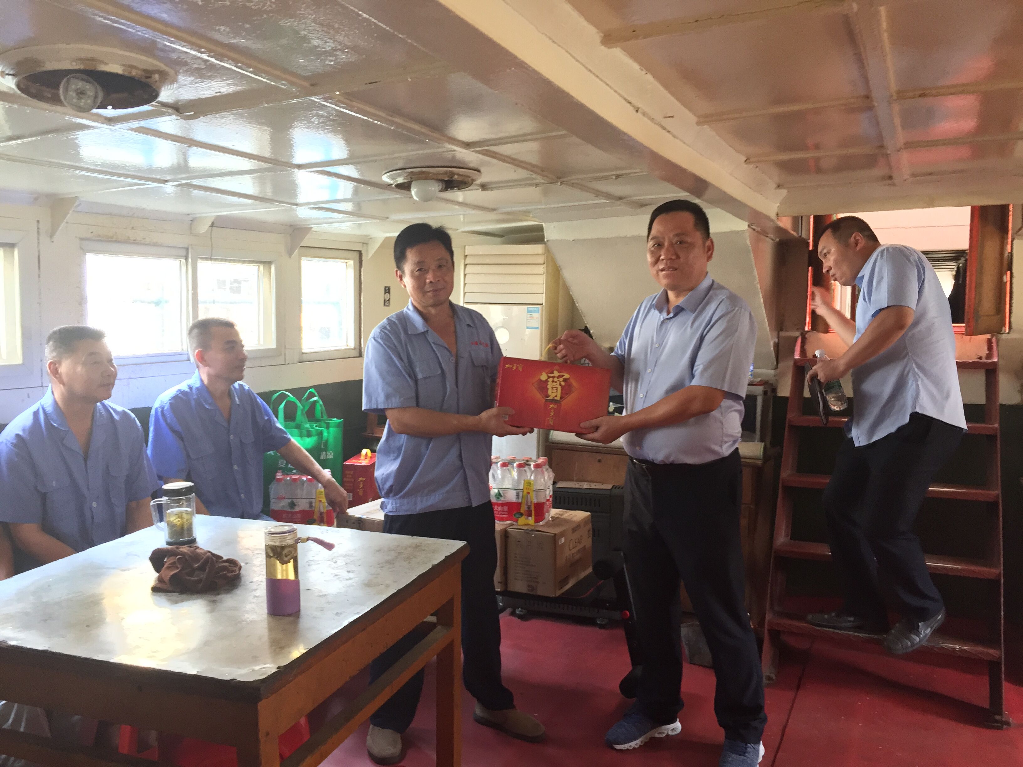 第一分公司生產(chǎn)人員比較分散,董總一行頂著烈日先后來到鳳臺、渦陽、宿州等地的船隊與項目,給一線員工送來了涼茶、礦泉水等慰問品,向廣大一線員工表達了深切的問候。同時,感謝大家對公司的辛勤付出,鼓勵大家勇?lián)?/FONT>,做貢獻,希望各位員工能在今后的工作中保重身體、繼續(xù)努力,與交航公司共同成長,爭取今年再創(chuàng)優(yōu)績。