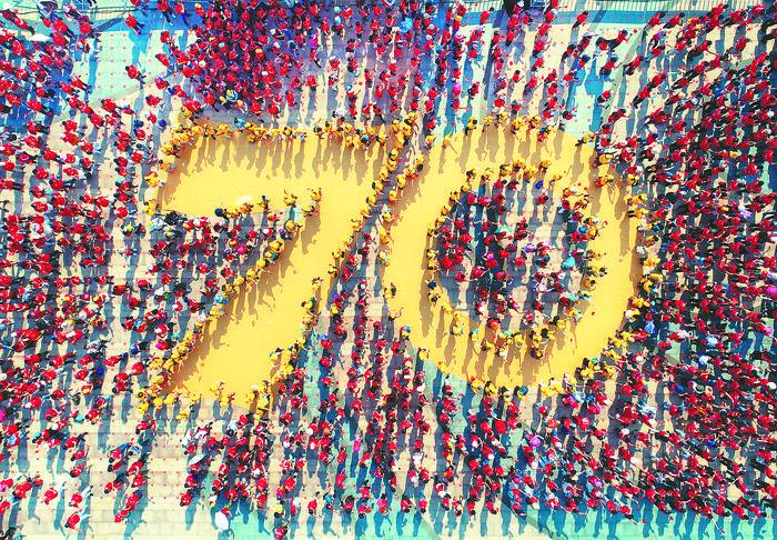 當(dāng)天合肥氣溫將近35℃,但高溫阻擋不了大家抒發(fā)自己的愛國(guó)情懷,包括近百名交航職工在內(nèi)的近萬(wàn)名網(wǎng)友在合肥融創(chuàng)樂(lè)園的臉譜廣場(chǎng)上高聲歌唱《我和我的祖國(guó)》并成功拼出巨型“70”字樣,以此獻(xiàn)上誠(chéng)摯的祝福,共同祝愿祖國(guó)繁榮昌盛。