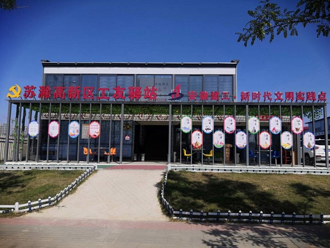 在觀摩過程中,時代樾府項目經(jīng)理田龍對施工現(xiàn)場的安全管理、文明施工、臨時用電、噴淋灑水降塵系統(tǒng)、定型化臨邊防護、體驗式安全培訓基地、樣板引路展示區(qū)、二維碼技術應用等向觀摩人員作一一介紹。特別是項目在新時代背景下建立的“安徽建工·新時代文明實踐點”,本著服務工友的工作思路,設置了便民中心、教育培訓中心、休閑娛樂及籃球場、羽毛球場等設施,并不定期提供免費的理發(fā)、縫補衣物、體檢、網(wǎng)絡、茶水等服務,給觀摩人員留下深刻印象。