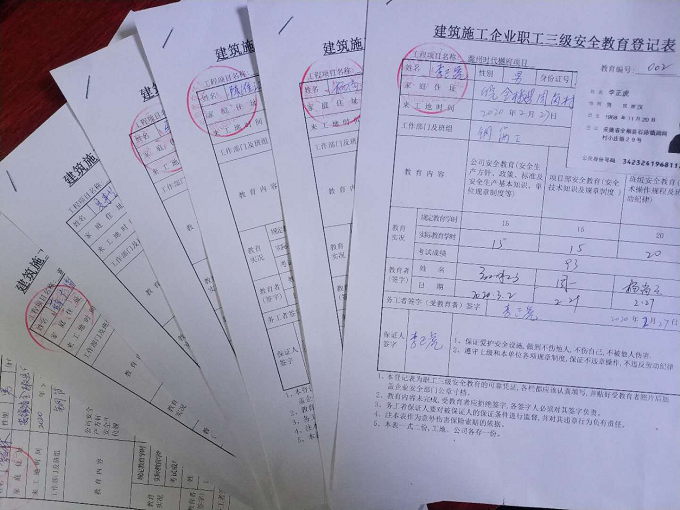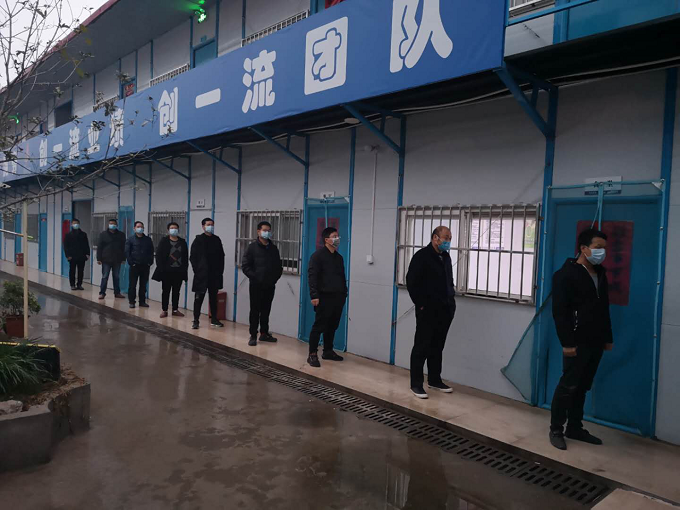 嚴格落實“一責兩案”。項目部結(jié)合實際情況和上級黨委相關(guān)要求,詳細制定了項目的疫情防控方案及復工復產(chǎn)方案,實行管理人員網(wǎng)格化包管到人制度。新進場工人填寫《項目包管人員與工人對應(yīng)表》,廣泛動員管理人員人人參與、人人負責,將責任落實到個人。包管人員在現(xiàn)場時,要巡查現(xiàn)場工人,檢查其口罩佩戴情況,避免人員聚集。同時采取嚴格的防控措施:一是進場前排查。項目部嚴格篩查具有重點疫區(qū)出差(旅行)史、與重點疫區(qū)人員有接觸史的員工情況,并做登記管理;利用微信群保證防疫應(yīng)急信息渠道暢通;二是建立個人健康信息系統(tǒng)。項目部成立了疫情防控工作小組。根據(jù)復工人員來源廣,流動性大的特點,合理分配防疫力量。每天由包管人員對工人健康狀況進行跟蹤監(jiān)測并上報,確保信息報送及時、準確。建立“一人一檔”,包含《個人健康信息承諾表》、《復工施工人員健康信息登記表》、《新型冠狀病毒肺炎疫情防控承諾書》,《項目復工返崗人員信息統(tǒng)計表》等,確保對復工返崗人員實施實時監(jiān)控,有記錄檔案。在填寫完之后,發(fā)放《疫情期間工作證》并要求工人上下班佩戴工作證;三是加強工人安全教育培訓。項目作業(yè)人員進場進行三級安全教育、防疫教育,記錄學習臺賬。各作業(yè)班組施工前需按照工種和施工特點進行安全技術(shù)交底。未經(jīng)安全教育和安全技術(shù)交底的作業(yè)人員一律不準上崗;四是體溫監(jiān)測。項目部每天了解管理人員的身體狀況并要求項目部管理人員每天上午、下午測量體溫。工人上下班期間需要填寫《項目部出入登記表》填寫出入時間,記錄出入溫度;五是實行定時消毒、分散作業(yè)、分散就餐制度。項目部安排專人每日對辦公區(qū)、生活區(qū)、施工區(qū)進行消毒,并記錄在《消毒登記表》中。工人上下班禁止聚集性活動,上班分散作業(yè),佩戴口罩。工人在食堂就餐時,由班組長統(tǒng)一在工人食堂購買盒飯,分批次購買杜絕聚集性就餐,打水、洗漱、洗澡分區(qū)、分時進行。項目部管理人員帶頭執(zhí)行;六是使用試劑檢測自查。項目部全體管理人員、食堂工作人員、門衛(wèi)等經(jīng)常與大量工人接觸的人員均進行了新型冠狀病毒的檢測,并填寫《安徽交航時代樾府項目部新型冠狀病毒試劑檢測結(jié)果》,經(jīng)檢測,所有人員均為陰性。項目部亦儲備部分試劑,對發(fā)現(xiàn)體溫異常及身體不適的工人進行檢測。此舉增強了一線管理人員打贏疫情阻擊戰(zhàn)的信心和戰(zhàn)勝病毒的決心。