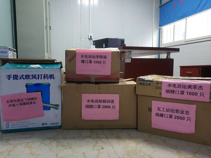 其中,李剛水電班組(2000只口罩)、黃萃杰水電班組(1000只口罩)、楊訓波水電班組(1000只口罩)、郭金忠瓦工班組(2000只口罩),振達架業(yè)(5000只捐贈公司)、胡運飛定型化班組(防護服+消毒噴霧機)積極行動,通過多種渠道、采取各種措施,籌集到一次性醫(yī)療口罩共11000只、防護服1套、消毒噴霧機一臺,并第一時間送往時代樾府項目部,助力項目部打贏新冠肺炎疫情防控阻擊戰(zhàn)。項目經(jīng)理田龍表示將會將這批物資合理分配到工人手上。班組長們表示會在危急時刻和項目部一起同進退,大家一起“守望相助,共克難關(guān)”。