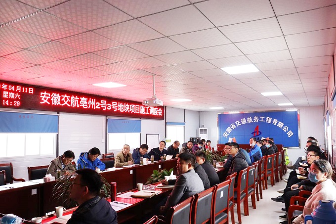 為進一步推進亳州市2號3號地塊重點項目施工,確保項目按照預(yù)定工期完成施工任務(wù)。4月11日,安徽交航公司在亳州2號3號地塊項目部組織召開施工專題調(diào)度會,公司黨委副書記、總經(jīng)理方申柱,副總經(jīng)理劉朝發(fā),機關(guān)相關(guān)部門以及項目部等主要負責(zé)人參會。公司黨委委員、總經(jīng)理助理邵佳主持會議。