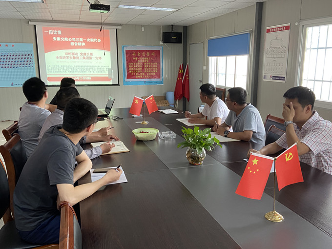 5月22日上午11:30,黃山龍駿家園項(xiàng)目部組織全體職工貫徹學(xué)習(xí)安徽交航公司三屆一次職代會(huì)精神,會(huì)上認(rèn)真?zhèn)鬟_(dá)學(xué)習(xí)了公司黨委副書記、總經(jīng)理方申柱作的題為《雙輪驅(qū)動(dòng)、黨建引領(lǐng),全面進(jìn)軍集團(tuán)第一方陣》的工作報(bào)告。