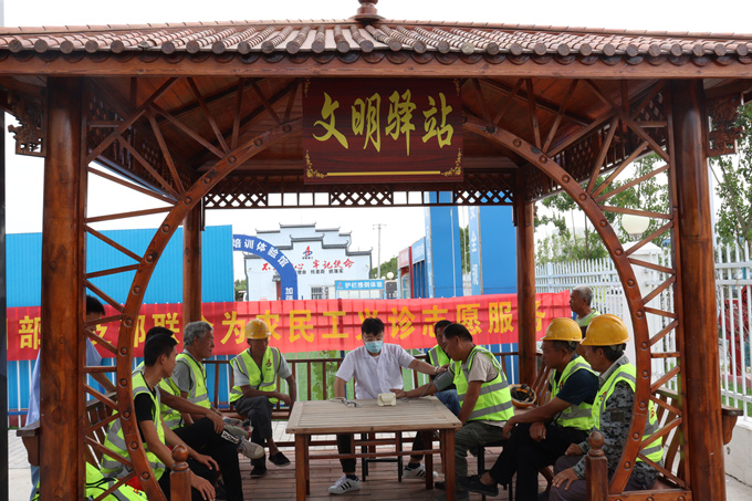 “在工地上干活根本沒時間關心自己的身體健康,今天一量血壓才知道偏高,以后還是要好好注意健康問題,項目部此次開展的免費義診活動,讓我門在這里工作感到安心、舒心。”工友們在檢查結束開心地說道。在義診活動中,醫(yī)護人員為每一位前來就診的工友們進行了認真檢查,為工友們提供了聽診、健康咨詢、測血壓等服務,耐心解答了工友們的疑問,并針對工友們職業(yè)常見病、慢性病作了講解指導。