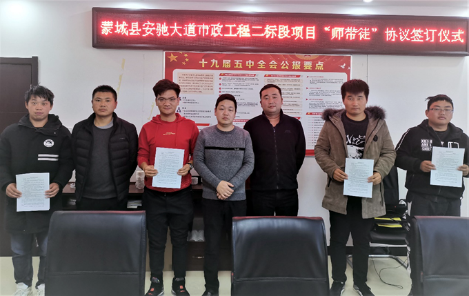 為加強(qiáng)項(xiàng)目青年人才隊(duì)伍建設(shè),促進(jìn)項(xiàng)目青年員工快速成長(zhǎng),12月12日晚,安徽交航蒙城安馳大道項(xiàng)目部組織開展“師帶徒”協(xié)議簽訂活動(dòng),積極落實(shí)公司“師帶徒”人才培養(yǎng)方案,做好“傳幫帶”工作。