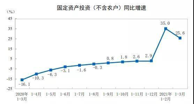 1-3月份,全國(guó)固定資產(chǎn)投資(不含農(nóng)戶)95994億元,同比增長(zhǎng)25.6%;比2019年1-3月份增長(zhǎng)6.0%,兩年平均增長(zhǎng)2.9%;經(jīng)季節(jié)調(diào)整后與去年10-12月份環(huán)比增長(zhǎng)2.06%。其中,民間固定資產(chǎn)投資55022億元,同比增長(zhǎng)26.0%。從環(huán)比看,3月份固定資產(chǎn)投資(不含農(nóng)戶)增長(zhǎng)1.51%。