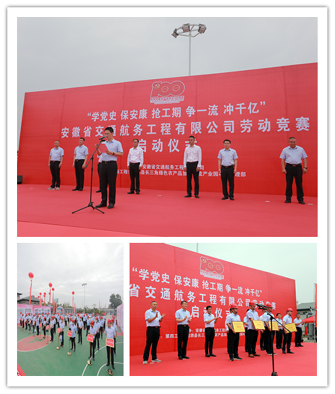 為貫徹落實集團勞動競賽啟動會議精神,快速掀起項目建設(shè)勞動競賽熱潮,6月18日,安徽交航“學(xué)黨史、保安康、搶工期、爭一流、沖千億”勞動競賽啟動儀式在泗縣長三角綠色農(nóng)產(chǎn)品加工物流產(chǎn)業(yè)園EPC總承包項目部舉行。泗縣縣委常委、常委副縣長喻凱應(yīng)邀出席儀式,公司黨委書記、董事長方申柱作動員講話,公司黨委委員、紀(jì)委書記、工會主席李楊,財務(wù)總監(jiān)高偉等參加儀式。黨委副書記、總經(jīng)理杜海峰主持儀式。