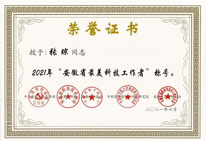 6月24日下午,安徽省科協(xié)召開了“眾心向黨、自立自強(qiáng)”安徽省科技工作者座談會(huì)暨省科協(xié)十屆七次常委會(huì)議,集中表彰了2021年“安徽省最美科技工作者”。公司黨委委員、副總經(jīng)理、總工程師張瓊獲評此項(xiàng)殊榮。