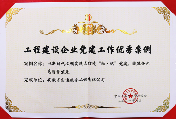 日前,全國工程建設(shè)行業(yè)黨建案例評選結(jié)果公布,安徽交航黨建案例《以新時代文明實踐點打造“融達”黨建,賦能高質(zhì)量發(fā)展》被評為“全國工程建設(shè)企業(yè)黨建工作優(yōu)秀案例”。